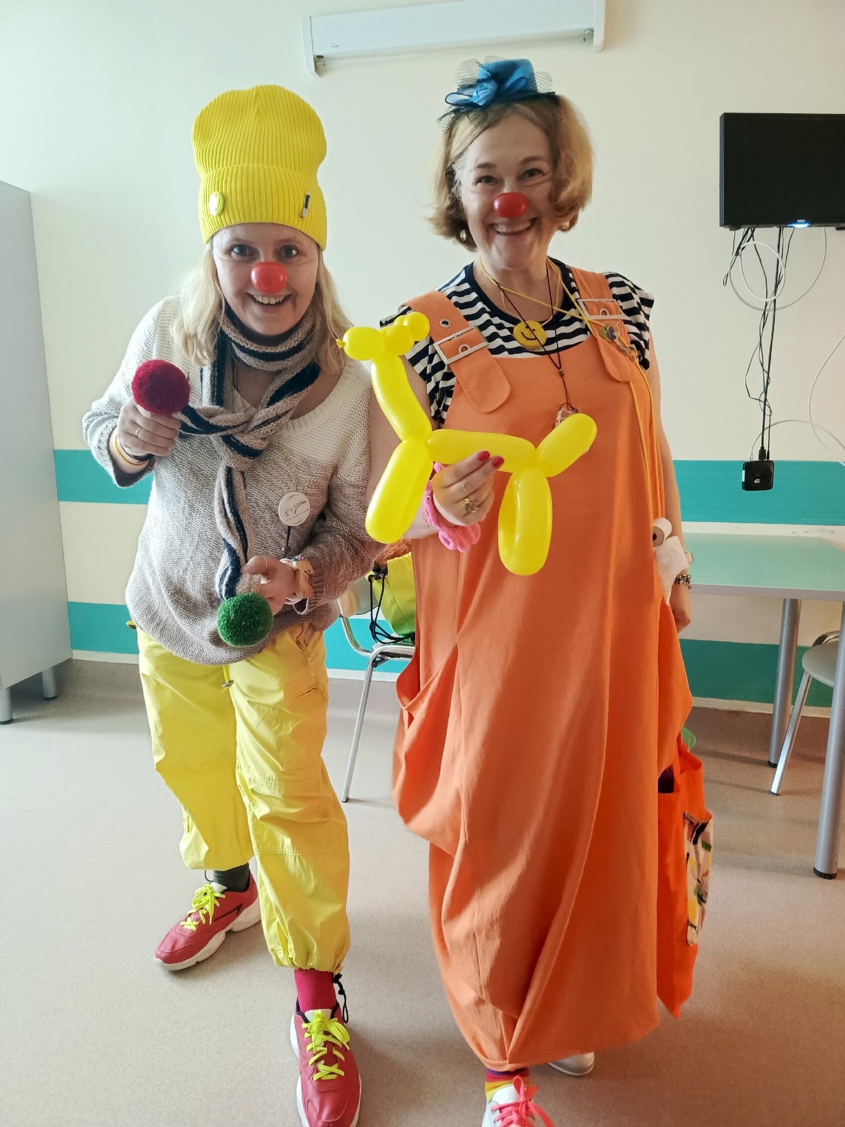 В холле собрались большие и маленькие зрители, которые с интересом хотели познакомиться и поиграть. Ну и началось веселье — в ход пошли пузыри с пожеланиями, чушь с приседаниями, разговоры о важном для каждого стоящего, фокусное жонглирование, любительские брейк танцы и профессиональное клоунское абсолютное присутствие «здесь и сейчас», где помогаешь людям радоваться просто так...